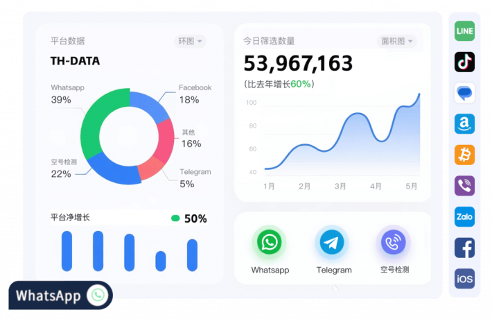 无论您的目标市场是欧美、东南亚、中东还是拉美,TH-DATA的全球节点网络都能确保验证的实时性与准确性。其99.8%以上的验证准确率,帮助企业避免了大量因误判导致的资源浪费。 - 数据洞察,驱动决策